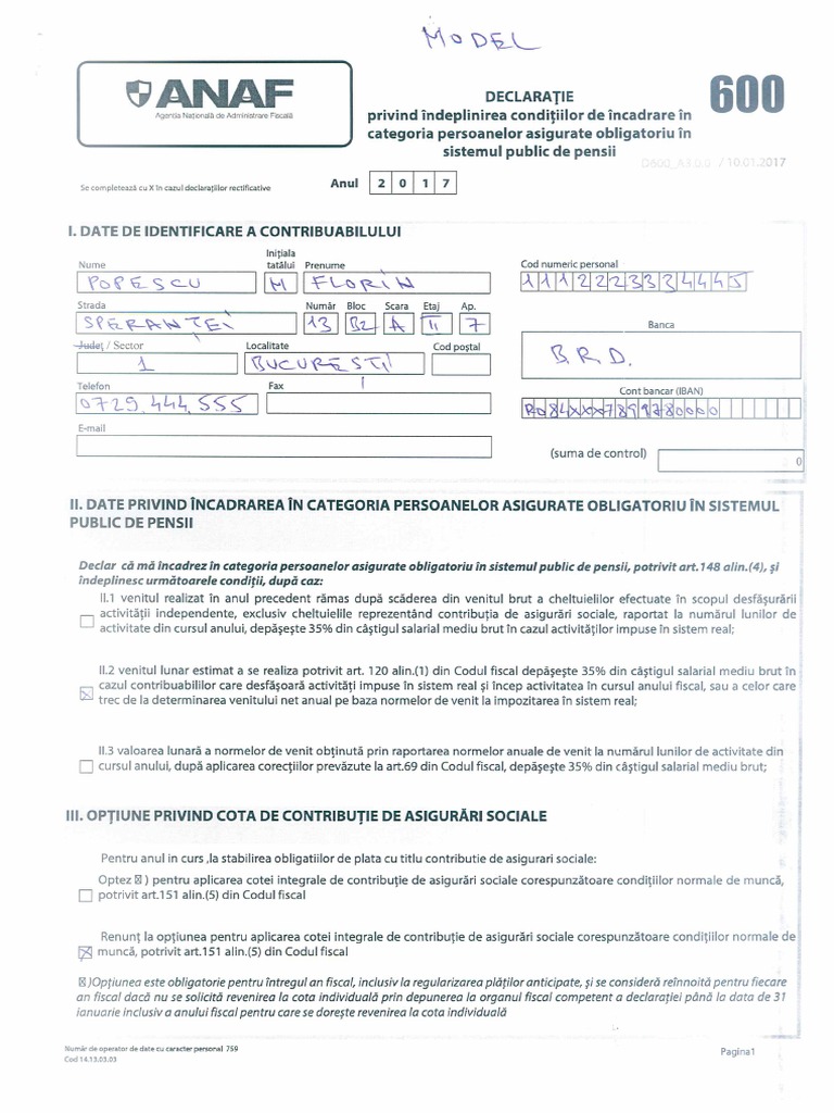Bonificaţia se determină de contribuabil şi se evidenţiază în mod distinct în declaraţia unică privind venitul realizat, obligaţiile de plată . Se înscrie numNJrul anexelor completate , corespunzNJtor categoriilor ǵi surselor de venit declarate. Prin declarația unică privind impozitul pe venit și contribuțiile sociale. Fondul pentru mediu, după caz. Model declaratie completata.