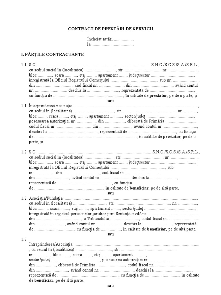 TIMIȘ”, numită în continuare PRESTATOR, . Cum scriem un contract de prestări servicii consultanță? Modelul contractului de prestări servicii care se încheie cu evaluatorii de servicii de. Pentru lucrari de renovare generala si vopsire.